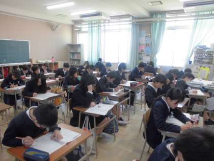 今日は経年調査の2日目です。2時間目に算数、3時間目に理科のテストを行いました。昨日に引き続き、どの子も時間を無駄にせず集中して取り組んでいました。普段、一生懸命にがんばって取り組んできたことを十分に発揮してほしいと思います。終わったあとには「つかれたー」「かたこったわー」などの声があがっていました。二日間、おつかれさまでした。