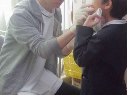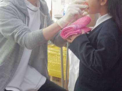 フッ化物塗布をすると歯が強くなり、むし歯になりにくくなります。歯科衛生士の方々に来ていただいて、4年生の子どもたち対象に行いました。合わせて、歯みがきもしっかりしましょうというお話がありました。