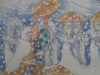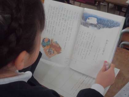 2年生が国語の授業で「かさこじぞう」の勉強をしていました。有名なお話なので子どもたちもよく知っています。授業では「とき」と「ばしょ」を手がかりに場面を分けたり、じいさまとばあさまのようすやしたことを発表してみんなで確かめたりしていました。