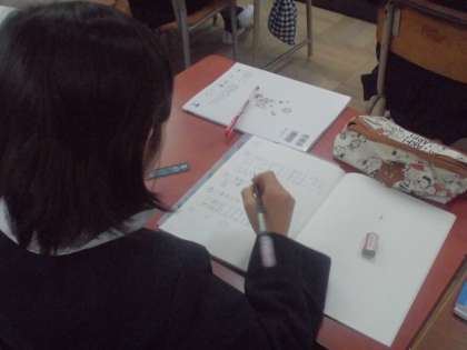 子どもたちはつくった表を見ながら、□と○の関係を一生懸命に考えていました。