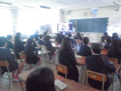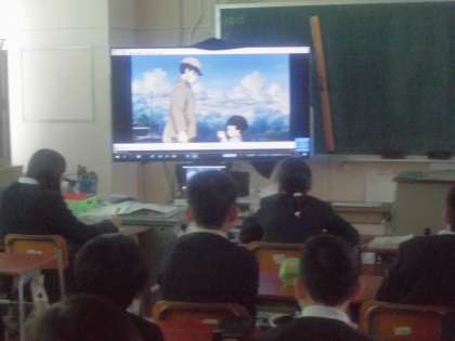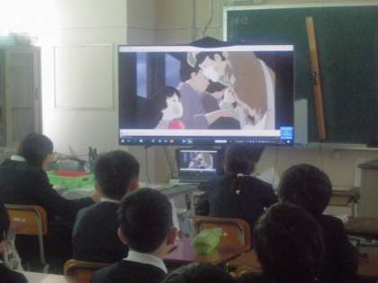 火垂るの墓は戦争体験を題材とした作品で、戦火の下、親を亡くした14歳の兄と4歳の妹が終戦前後の混乱の中を必死に生き抜こうとするがその思いも叶わずに死を迎えていく姿を描いた物語です。6年生は今、平和学習をしています。先日には社会見学でピース大阪に出かけて、戦争の悲惨さについて学習してきました。今日は「火垂るの墓」を視聴していました。みんな真剣な表情で見入っていました。