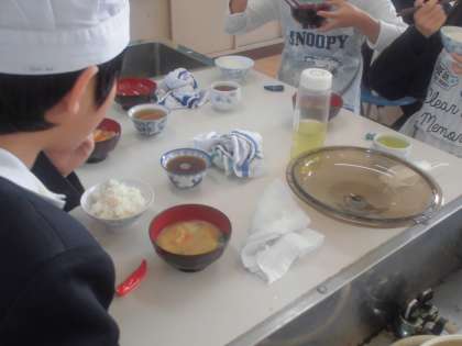 先日に引き続き、5年生のもう一つのクラスが調理実習をしました。ごはんとみそ汁を作りました。みんなで協力して、おいしくできました。ごはんはガラスなべで炊いているので、少しおこげもできます。おこげは人気で、取り合いになります。みそ汁も具材がたっぷりで飲みごたえ(食べごたえ)がありました。