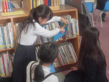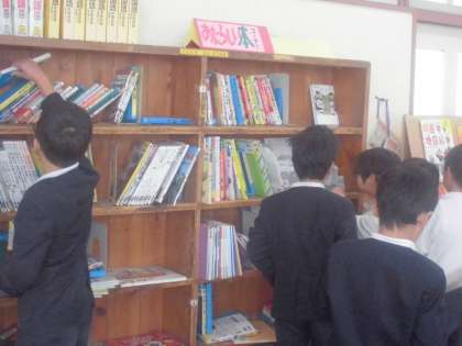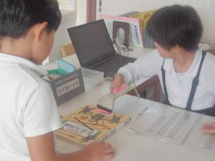 パソコンとバーコードリーダーをつかって自分たちで本の貸し出しも行っていました。