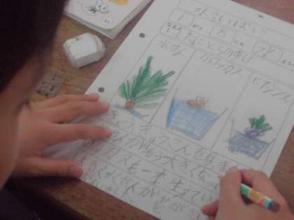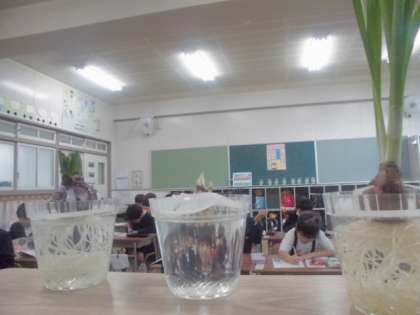 1年生の子どもたちが植物のスケッチをしていました。スイセン、ヒアシンス、クロッカスです。花は咲いていませんが、子どもたちはていねいにスケッチしていました。せんせいが「あしたさくかもしれないよ。」というと、「えーえーえー、ほんとにー。」・・・とてもかわいい1年生の子どもたちでした。
