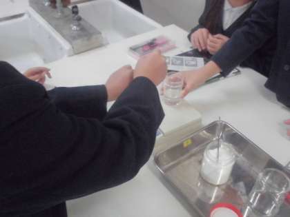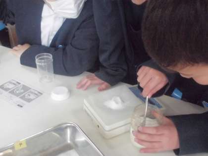 5年生の子どもたちが水よう液の重さについて実験をしていました。食塩を水にとかすと目には見えなくなるけど、重さとしてはあるんだね。つまり水にとけたものは目には見えなくても水よう液の中にあることがわかりました。