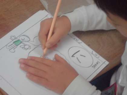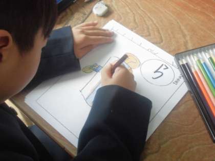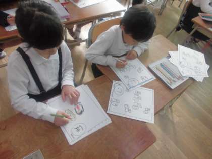 1年生がみんなで楽しく遊ぶかるた大会に向けて、自分たちでビッグかるたを作っていました。一人一人それぞれが決められた文字を担当して、絵を描いたり色をぬったりしていました。もりあがるといいですね。楽しみです。
