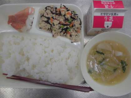 今日の給食のメニューは、赤魚の醤油だれかけ、うすくず汁、高野豆腐のいり煮、牛乳、ごはん、でした。赤魚の醤油だれかけは赤魚は身が厚く手作りの醤油だれが味を引き立てていました。うすくず汁はとろみがあって温かく、さといもがやわらかくなるまで煮られていました。高野豆腐のいり煮は豚挽肉、高野豆腐、にんじん、ひじき、グリンピースが入っていました。少し甘めの味つけでとてもおいしかったです。
