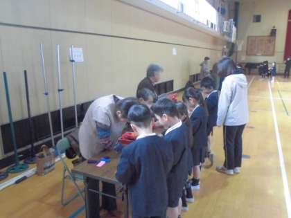 子どもたちは各コーナーをグループごとに回りながら、全部のあそびを体験しました。やっぱりお年寄りの方々は上手です。子どもたちも必死に上手になろうとがんばっていました。とてもよい体験になりました。最後にみんなでお礼のあいさつを言いました。今日来ていただいたお年寄りの皆様方、1年生の子どもたちのために本当にありがとうございました。まだまだこれからも寒い日が続きます。お体には十分に気をつけてください。