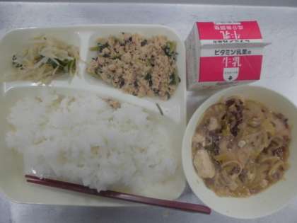 今日の給食のメニューは、すき焼き煮、もやしときゅうりの生姜づけ、ツナっ葉炒め、牛乳、ごはん、でした。すき焼き煮は豆腐や白菜、糸こんにゃくなどに甘めの和風だしがしっかりとしみ込んでいて、牛肉の旨みも広がっていました。ごはんがとても進みました。もやしときゅうりの生姜づけは生姜の香りがアクセントになっていてさっぱりとした味に仕上がっていました。ツナっ葉炒めは大根の葉とツナが一緒に炒められていました。こちらもごはんにふりかけるととてもおいしかったです。