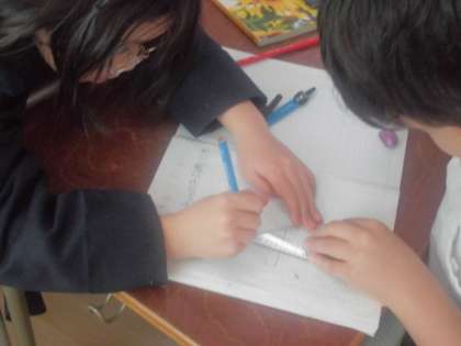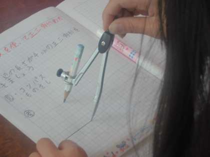 コンパスを使って、二等辺三角形や正三角形を作図します。