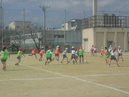 4年生の子どもたちの元気いっぱいの声が運動場に響いています。