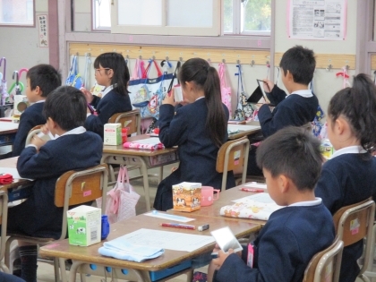 2年生の歯みがき指導がありました。歯科衛生士さんに来ていただき、正しい歯みがきの仕方について教えていただきました。むし歯にならないよう、大人になっても健康な歯であるためには正しく歯みがきをすることが大切です。歯垢染色剤を使って歯の汚れている所や磨き残した部分を染め出し、鏡を見てその部分を確かめながらブラッシングをしていきました。