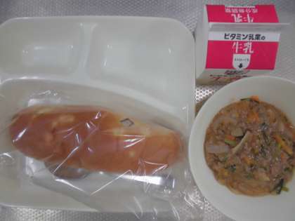 今日の給食のメニューはマーボーはるさめ、牛乳、パン、でした。12日(金)までは簡易給食献立のため品数が少なくなっています。マーボーはるさめは牛豚ひき肉、にんじん、たまねぎ、たけのこ、しいたけが生姜とトウバンジャンで香りよく炒められていて、にらの風味も効いていておいしかったです。とろみもしっかりとついていて、やわらかいはるさめの食感も楽しめました。