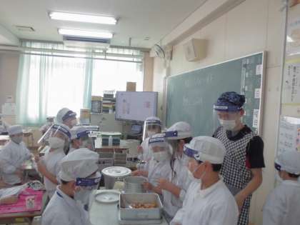 給食当番も配膳時にはフェイスシールドをつけて配膳しています。