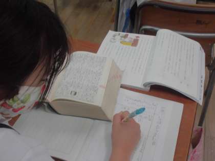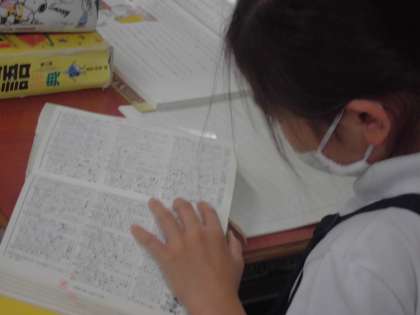 5年生が国語辞典を使って意味調べをしていました。今はスマホやパソコンで調べることも多いですが、やはり言葉の意味を自分で調べて理解することは国語の学習においてとても大切なことです。