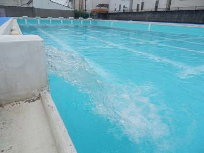 プール清掃が終わりきれいな水がプールに入りました。