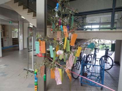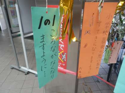 「サッカーがうまくなりますように…」「テストで100点がとれますように…」学校の笹には、今年もたくさんの短冊に願いことが書いてあります。今夜の天気は 晴れるかな? お子様と一緒に、天の川を探してみるのもいいですね。今夜、お空をみながら お星さまにお願いごとを込めてみませんか!?雨かな…