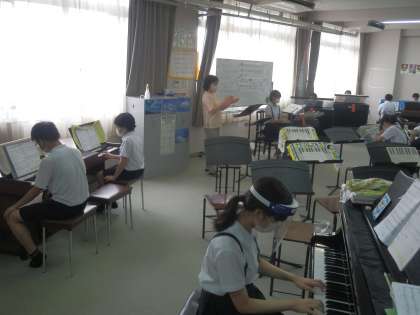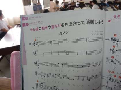 オルガンで「カノン」の合奏をしました。カノンは、1つの旋律を、いくつかのパートが一定の間隔をあけて演奏をはじめ、追いかけるように進む音楽です。友だちと息ぴったり!美しいハーモニーを響かせていました。