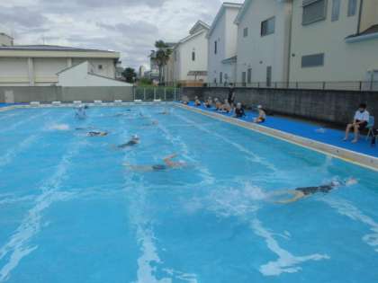 今日は昼から久しぶり太陽の光も差し込み、あたたかくなりました。5年生の子どもたちがプールに入りました。ばた足をしたりクロールをしたり・・・。ルールを守りながら泳いでいました。