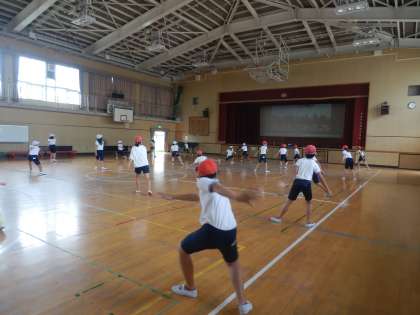 本年度の運動会は先日配布いたしましたお手紙にもありますように、10月4日(日)を予定しています。今年は、新型コロナウイルス感染症対策のため、1・3・5年生と2・4・6年生に分かれて競技を行います。団体演技は6年生のみ行います。6年生は、毎日練習に励んでいます。