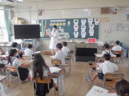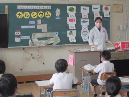 子どもたちはほねを強くするためには、どんな食べものを食べたらいいのか、楽しみながら学習していました。いっぱい食べて強いからだをつくろう!!