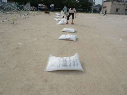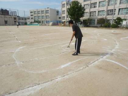運動場の整備のために今日の放課後、にがりをまきました。だいぶ涼しくなってきましたが、まだまだ暑い日々です。みなさん大粒の汗を流しながら作業をおこないました。運動会に向けて、着々と準備が進んでいます。