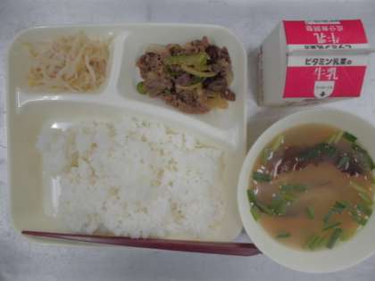 今日の給食のメニューは、プルコギ、トックスープ、もやしの甘酢和え、牛乳、ごはん、でした。プルコギはコチジャンや生姜、にんにく、ごま油等で濃いめの味つけにしてあるので、ごはんとの相性もばっちりでした。牛肉だけでなく、一緒に炒められているたまねぎやピーマンにも味がしみ込んでいておいしかったです。トックスープはしいたけの風味が漂う中華スープにトックが入っていました。トックは韓国のお餅で粘りや伸びが少なく、煮込み料理や鍋料理に加えても煮崩れしにくいのが特徴です。もやしの甘酢和えはさっぱりとしていました。
