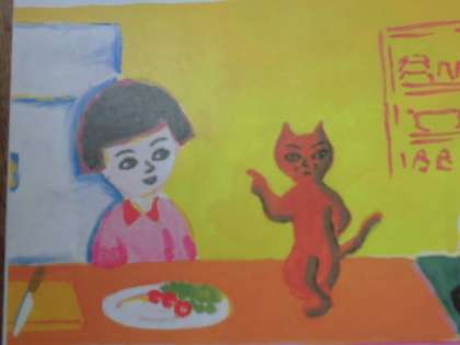 1年生の子どもたちが国語の授業で「サラダでげんき」を読んでいました。文章の中に少しずつ漢字も出てきます。読みながらふりがなも書いていきます。元気な声が教室に響きわたっていました。