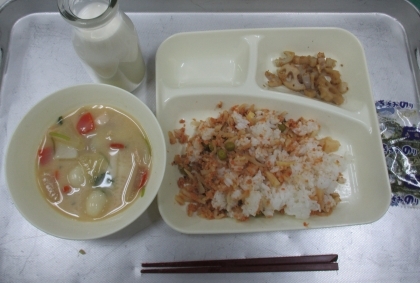 最近はお正月におぞう煮を食べない家庭もあると聞きますが、学校給食ではこのように季節にあった献立もでます。