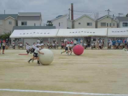 たまいれやスプーンリレー、台風の目、大玉ころがし、高学年の迫力あるリレー・・・、どの学年の団体競技もかわいらしく、そして見ごたえがありました。