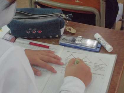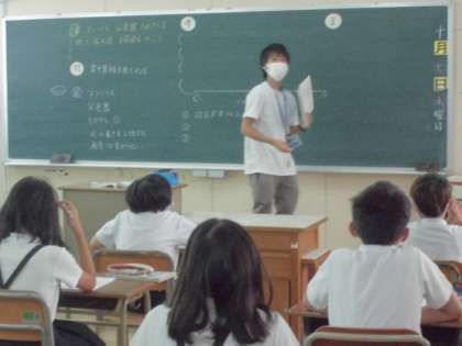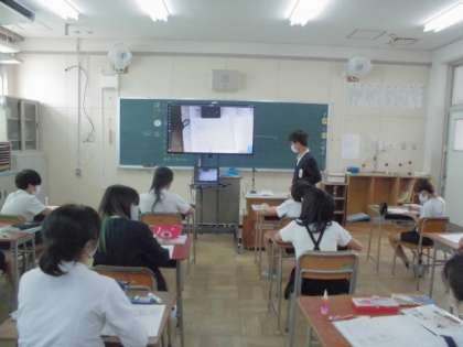 6年生が算数の授業で拡大図の描き方について学習していました。何を使えばいいのだろう?定規、分度器、コンパス・・・。いくつかの描き方があります。子どもたちはそれぞれ自分が考えた描き方でチャレンジしていました。6年生にもなると自分が描いた方法につて友だちに知らせなければいけません。大型テレビに作図を映して、描き方について説明する場面も見られました。