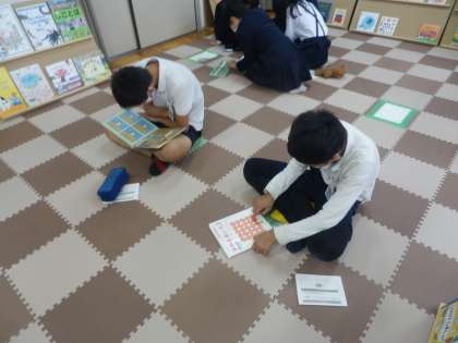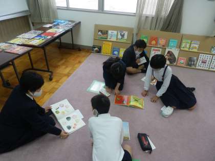 多目的室をのぞいてみると、6年生が楽しそうに絵本に触れていました。興味のある本を静かに読む人や、本を囲んで意見を交流している人など、楽しみ方は様々です。たまにはゆっくり読書もいいものですね。