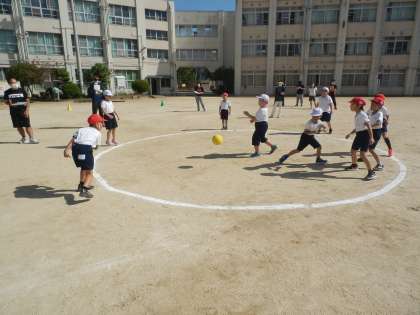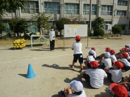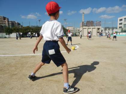 1年生の授業研究会がありました。今日のめあては「ねらったとろに力づよくボールをなげよう!」です。腕を大きく振ってボールを投げたり、みんなで作戦を考えながらゲームを進めたりすることができました。