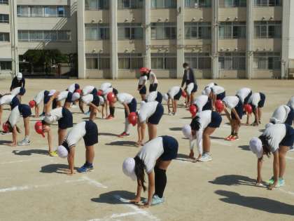 来週から始まる体力測定に向けて、体を柔らかくすることや俊敏性を高めることをめあてに、スポーツトレーナーの山村先生にご指導していただきました。いろいろなストレッチを教えてもらい、その後もう一度試してみると体が柔らかくなっていることを実感することができました。運動は、毎日続けることが大切です。お家でも取り組んでみてくださいね。