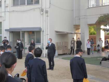 今日から6年生は一泊二日で淡路島方面に修学旅行に出かけます。さまざまな活動や見学、買い物などが予定されています。出発式では、校長先生から「修学旅行は学びの場です。見聞や交流を深め、学びの良い機会としてください。また淀川小学校の代表としての自覚を持ち、マナーやあいさつ、ルールなどをしっかりと守りましょう。楽しい修学旅行にするためにはどうしたらいいのか考えながら自律して行動することが大切です。たくさんのすばらしい思い出を作って帰ってきましょう。」というお話がありました。子どもたちは元気にバスに乗り込み、笑顔で出発しました。安全に気をつけていってらっしゃい!!