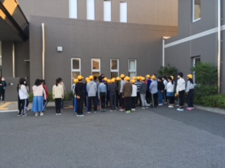宿舎に入り部屋で荷物の整理をして、避難訓練を行いました。