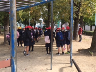 城北公園に到着しました。出発時は曇り空でしたが、青空が広がってきました。
