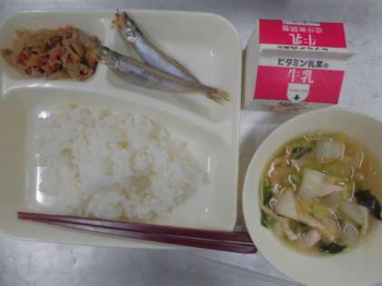 今日の給食のメニューは焼きししゃも、五目汁、きんぴらごぼう、牛乳、ごはん、でした。焼きししゃもは身はぷっくりとしていて香ばしく焼き上げられていました。五目汁はこんぶとけずりぶしでだしがしっかりととられていてコクがあり、透明感のあるスープにていねいに刻まれた鶏肉、たまねぎ、白菜、うすあげ、小松菜が入っていました。きんぴらごぼうは濃い目に味つけされていて、ごはんとよく合いました。