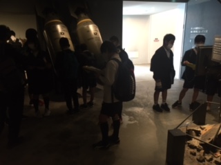 大阪空襲の実態を写真、実物資料、体験者の証言などにより学んでいます。