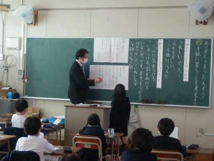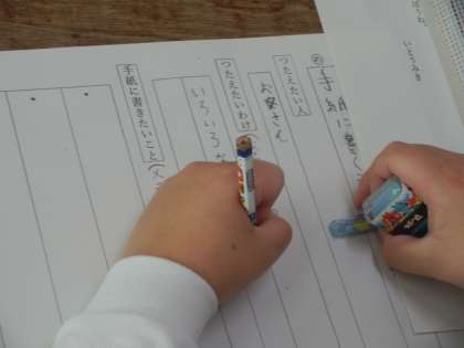 例文をもとに、手紙の書き方や言葉の使い方などについて気付いたことを話し合うことができました。