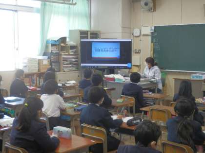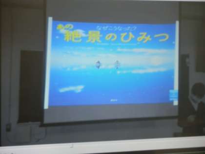 朝の時間に図書委員会のおすすめの本の発表がありました。絶景の写真をおさめた本の紹介にクラスのみんなは、画面を熱心に見入っていました。