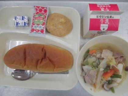 今日の給食のメニューは豆腐ハンバーグ、カリフラワーのスープ煮、固形チーズ、牛乳、パン、でした。豆腐ハンバーグはふんわりやわらかく、ツナの味がアクセントになっていておいしかったです。調理員さんがひとつひとつていねいに気持ちを込めて丸めてから焼き物機で焼いています。他の中学校の分も作っているので、いったい何こ丸めているのでしょうか。ものすごい手間と労力ですね。ありがとうございます。カリフラワーのスープ煮は醤油と塩こしょう、チキンブイヨンで味をととのえ、カリフラワー、豚肉、にんじん、キャベツ、しめじ、三度豆が入っていました。固形チーズは一人1こです。