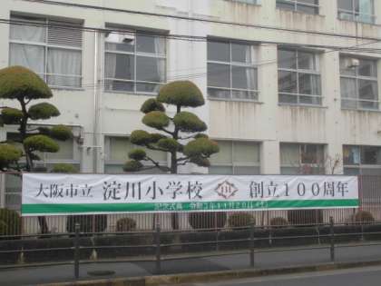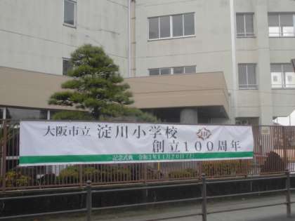 創立100周年記念事業委員会より、正門横と道路側の2か所に立派な横断幕が掲げられました。来年は子どもたち、保護者、地域の皆様とともに淀川小学校の創立100周年をお祝いしたいと思います。