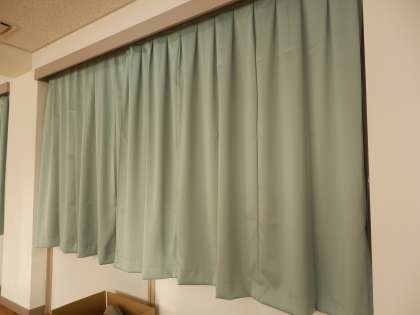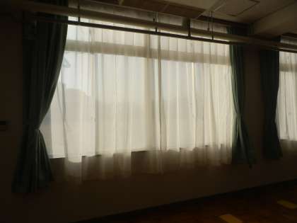 多目的室のレースカーテンと遮光カーテンが新しくなりました。