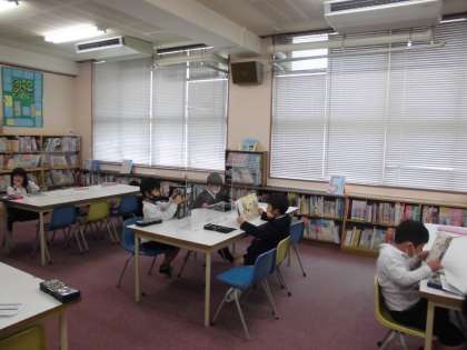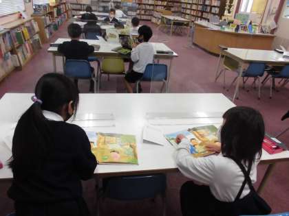 1年生の子どもたちが図書室で読書をしていました。