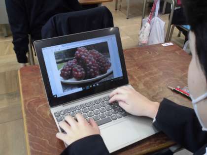 4年生が社会の授業で「特色ある地域のくらし」という単元を学習していました。大阪の各地の特色について調べていました。ちょうど教室をのぞいたときは、「ぶどう作りのさかんな柏原市」について調べていました。