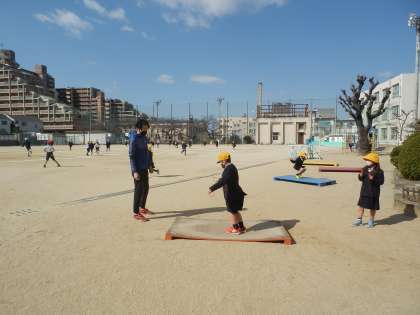 休み時間には、外で元気にドッジボールや縄跳びをして遊ぶ子どもたちの姿が見られます。「子どもは風の子」寒さに負けない丈夫な体をつくってほしいです。