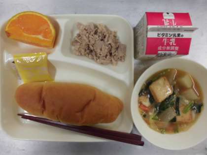 今日の給食のメニューは、豚肉のオイスターソース焼き、厚揚げと大根の中華煮、デコポン、牛乳、パン、でした。豚肉のオイスターソース焼きはオイスターソースの風味がしっかりと豚肉についていました。厚揚げと大根の中華煮は少し濃いめの味つけで味がしっかりと感じられ、とろみもついていました。厚揚げ、大根、にんじん、たまねぎ、白菜、にらが入っていました。デコポンは果汁たっぷりで自然の甘さが感じられました。