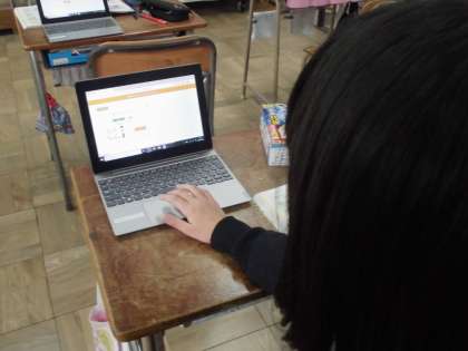 コンピューターが動作するための手順や指示のことをプログラムといい、プログラムを作ることをプログラミングといいます。今日は6年生の子どもたちがタブレット端末を使ってプログラミングを体験していました。