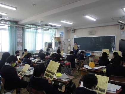 6年生の子どもたちが担任の先生と一緒に卒業記念新聞を読んでいました。子どもたち一人一人のことばが載っています。いよいよ明日は卒業式です。いろいろなことを考えながら子どもたちは新聞を読んでいたことと思います。